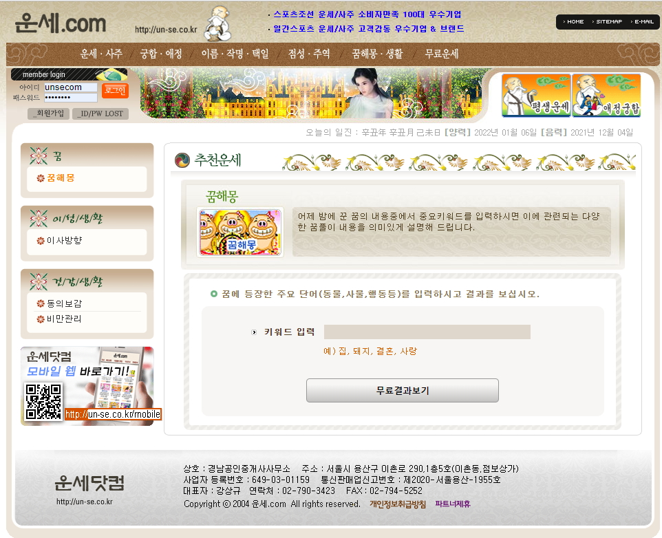 ㅋㅋ 바로 운세닷컴(un-se.co.kr)이라는 사이트 인데요 적중률이 높은 곳으로 유명해요.