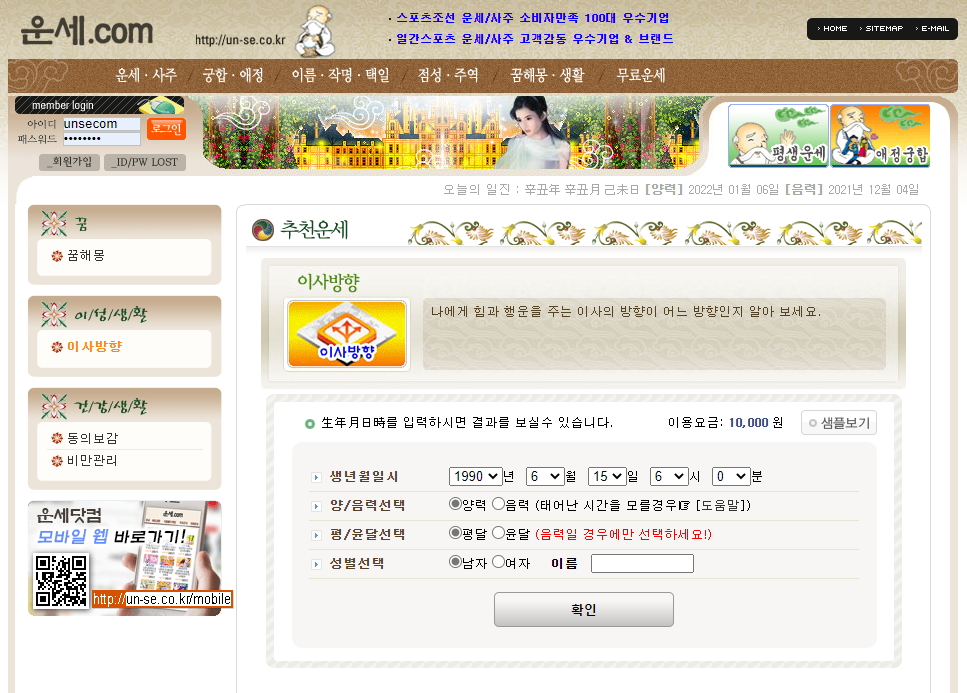 생년월일운세, 무료운세, 무료토정비결, 무료사주, 꿈해몽, 무료 궁합, 2022 토정비결, … 올해의 운은 귀인이 나를 도우므로 많은 일을 순조롭게 이루겠습니다.