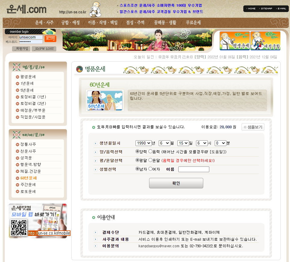 무료사주 매일 볼수 있는 곳이요! 전 예전부터 항상 당골로 다니던 철학관이… -> un-se.co.kr/mobile/pc 무료 운세로 들어가면 됩니다.
