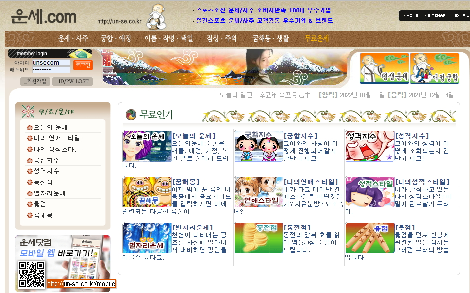 http://www.un-se.co.kr. www.un-se.co.kr. 모든 메뉴가 무료는 아니고 무료운세는 따로. 있더라구요.