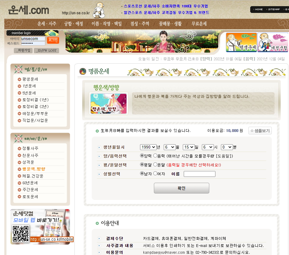 https://app.ac/JAMKL9513 http://www.un-se.co.kr www.un-se.co.kr 모든 메뉴가 무료는 아니고 무료운세는 따로 있더라구요.