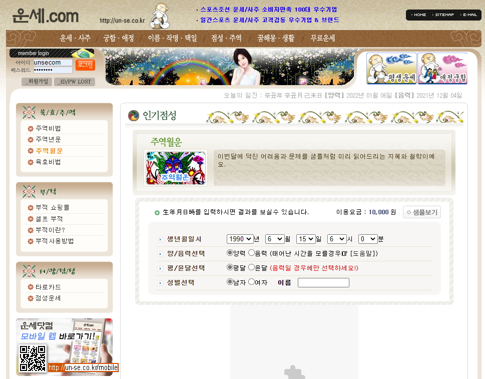 무료사주 매일 볼수 있는 곳이요! 전 예전부터 항상 당골로 다니던 철학관이… -> un-se.co.kr/mobile/pc 무료 운세로 들어가면 됩니다.