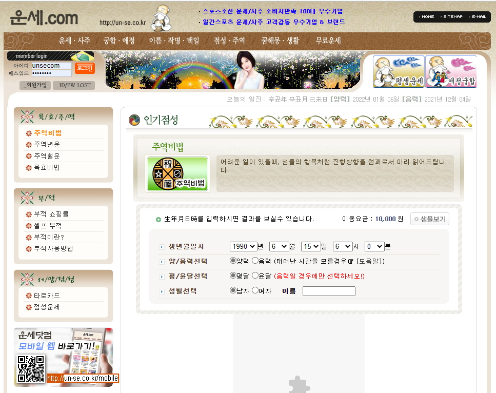 무료사주 매일 볼수 있는 곳이요! 전 예전부터 항상 당골로 다니던 철학관이… -> un-se.co.kr/mobile/pc 무료 운세로 들어가면 됩니다.