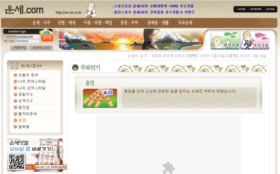 http://www.un-se.co.kr 운세닷컴 운세.com. 인사드립니다드립니다!! 운명사주 알고싶을때!! 매월 본인의 신혼부부궁합!! 현 시점 무료로 확인하실수있어요.